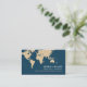 Cartão profissional moderno azul escuro com nome ("estilo de fonte unica um") e ocupação personalizada relacionada a viagem (agente viagem) e a imagem de um mapa do mundo... e modelos para endereço, email e telefone no verso...