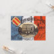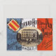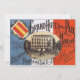 Ilustração vintage de um cartaz de viagem europeu ou etiqueta de bagagem do Grand Hotel de la Paix, na capital Madrid, Espanha. Uma imagem do hotel está sobre a bandeira francesa e a bandeira da Espanha está no canto.