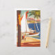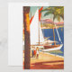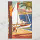Anúncios especiais Vintage europeus de Viagem - Praia, aldeia, pessoas, palmeiras, mar azul e ilustração do céu