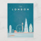 Poster de viagens do estilo Vintage do icônico horizonte de Londres à noite. O texto diz Visit London. Posters de viagens vintage desenhadas à mão e reproduzidas digitalmente desenhadas pela VintageTravelPosters.co.