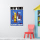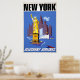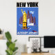 poster de viagens vintage para as companhias aéreas de Alegrey mostrando a Estátua da Liberdade e a linha do horizonte Nova Iorque, com o edifício Empire State e o edifício Chrysler, entre outros. cerca de 1950