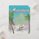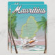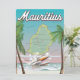 Mapa ilustrado da Maurícia em uma bela vintagem ou estilo retrô, com um avião marítimo pousando em uma bela praia.