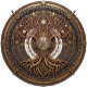 Symmetrical circular mandala featuring colorful lotus petals and intricate floral patterns on a white background.