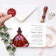 Belo convite de fiesta Quinceañera inclui um convidado ilustrado de 15 de aniversário, vestindo um lindo vestido vermelho de quinceanera, decorado com flores coloridas pastel aquañera e um confete amarelo ouro. Este convite inclui detalhes de massa e recepção, e todo o texto é editável. A parte de trás é vermelha vibrante e coordena-se com o vestido marmelho na frente do cartão.