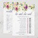 Cartão de jogo de chá de panela de noiva combina com nossa coleção de chá de panela de noiva Vibrant Bloom e apresenta bordas florais em aquarela em tons de verão exuberantes. Cartão frente e verso permite que você obtenha dois jogos em um! Frente apresenta "Ele Disse, Ela Disse" e o verso apresenta uma palavra embaralhada com tema de casamento. Personalize com o nome da noiva e data do chá. As perguntas "Ele Disse, Ela Disse" são completamente personalizáveis usando os campos de modelo na página. Para personalização adicional, sinta-se à vontade para entrar em contato!