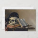 Ainda a Vida com Crânio, Livros, Flute e Pipe (1632-1660) do pintor holandês Harmen Steenwyck (c.1612 - depois de 1656) é uma poderosa vanita que ainda é vida refletindo temas de mortalidade, conhecimento e a natureza fugaz da vida. O crânio, aliado a livros, flauta e cano, serve como lembrete tanto de prazeres intelectuais como terrestres que inevitavelmente desaparecem com o tempo. O domínio da sombra e da luz de Steenwyck cria uma composição dramática e contemplativa característica da Idade do Ouro Neerlandesa. Perfeito para arte de parede, cartões de saudação, ou presentes, esta obra-prima de vintage também faz uma escolha ousada e sofisticada para o decor de Halloween. Use as ferramentas de design para adicionar texto personalizado ou personalizar a imagem.