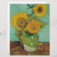 Vida Estática - Vaso com Três Girassóis, Van Gogh. Impressionismo arte fina. Pintura a óleo floral. Letterhead para escritório, negócios, arte, casa, escola, casamento, retomar, ocasiões.