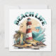 Casa de Praia 'Cartão de Arte em Branco. Enquadre ou envie! Ilustração de uma cena praiana com farol, pranchas de surf, palmeiras e golfinho.