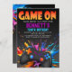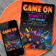Seu jogador nivelou! Este design de aniversário de jogos tem um estilo brilhante e selvagem com salpicos de tinta e um controlador de console para definir o palco para uma celebração de excelente. O esquema de cor azul-alaranjado, roxo e aqua e as fontes corajosas são perfeitos para jogadores de qualquer idade. Faça o download da sua cópia digital hoje mesmo para que você comece no melhor aniversário de todos os tempos!