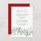 Adicione um pouco de elegância ao seu casamento de Natal com estes cartões de detalhes festivos que contêm uma bela cor aquática verde botânico de inverno e bagas vermelhas. A palavra "Detalhes" é estilizada na tipografia da escrita de tendências, complementando perfeitamente a elegante design. A carta se reverte para uma cor vermelha de baga rica para um olhar coeso e festivo. Use os campos de modelo para personalizar com suas informações de casamento, fazer que esses cartões de cerimônias de casamento sejam uma escolha perfeita para sua celebração inspirada em boho. Explore o tema de casamento correspondente ao cheio em www.zazzle.com/dotellabelle. Arte com aquarela original e design por Victoria Grigaliunas.