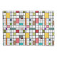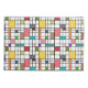 Essa fronha tem um design moderno do século médio de uma grade de linhas pretas com quadrados e retângulos em cores retrorativas em um campo de branco.