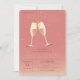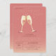 Copos de champanhe cor-de-rosa para o convite de aniversário Um convite de aniversário moderno, chic e glamouroso com óculos de champanhe dourados desenhados à mão com faíscas de diamante dourado brilhante sobre fundo cor-de-rosa-amarelo com o mesmo fundo e faíscas de diamante no fundo.