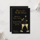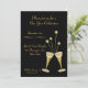Um convite festivo para uma festa de coquetel ou véspera de Ano Novo com óculos de champanhe e estrelas em fundo preto. Fácil de personalizar com as informações da sua parte.