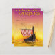 Viking longship navegando no oceano ou no mar do norte durante um belo pôr do sol.