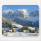 Mousepad com o St. Magdalena da vila (papai noel Maddalena) com sua igreja no Villnoesstal em Tirol sul, Italia, na neve durante o inverno.