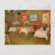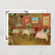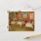 Fácil de personalizar o cartão postal do convite de abertura do restaurante! Apenas adicione seus detalhes pessoais! Interior de um Restaurante por Vincent van Gogh é uma pintura arquitetônica de apos impressionismo de arte antiga que apresenta uma visão interior de um café com mesas com toalhas de mesa e vasos com flores prontas para janto. Sobre o artista: Vincent Willem van Gogh era um pintor do Post Impressionista cujo trabalho era mais notável por sua beleza áspera, honestidade emocional e cor ousada.