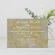 O convite de casamento "Silver e Dourados Linings" pintado. Todos os elementos de design podem ser editados (movidos, redimensionados, excluídos, duplicados, rodados etc.) em ambos os lados do convite. Sinta-se livre para editar o fazer deste seu convite exclusivo e especial para o seu dia de casamento! O design pode ser transferido para outros produtos do Zazzle. Não se esqueça de ajustar o tamanho do design para ajustado do novo produto. Personalize excluindo texto e adicionando suas próprias palavras. Use a cor, o tamanho e o estilo da sua fonte favorita. Obrigados para parar e comprar. Muito apreciado. Parabéns e feliz dia de casamento!!! Tamanho: Envelope branco padrão de convite/placa plana de 5" x 7" incluiu duas opções de impressão disponíveis: Standard and High Definition High Quality, cheio color, impressão em cheio em ambos os lados Impressão: Standard Nosso processo de impressão padrão produz um espectro de cores de cheio. Usando tintas líquidas, nossa impressão de alta qualidade rivaliza com a qualidade da impressão em formato plano, garantindo que suas imagens e designs sejam bonitas e vibrantes. Tipo de Papel: Coleta de Assinatura: Corresponda A escolha de papel mais popular, nosso Matte é ideal para convites, placas RSVP e outras credenciais de parte baseadas em papel. A textura da casca do ovo de Matte é macia ao toque com um acabamento suave que fornece o pano de fundo perfeito para os designs escolhidos. 120 lb, 17 pontos de espessura. Textura macia e de casca de ovo com acabamento suave. Feito nos EUA.