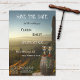 Guardar o cartão de datilografia com dois copos de vinho com uvas no barril contra uma paisagem impressionante. Bonita para amantes de vinho ou um evento planejado numa vinha ou adega.