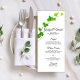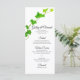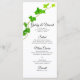 Deixe seus convidados no tema da sua elegante festa de jardim, festa de noivado, chá de panela ou cerimônia de casamento saberem o que deve ser jantado com o bonito Dia Verde da Vinha Inglesa no Menu de Casamento Branco. Personalize-o com os diferentes cursos oferecidos no seu evento, bem como os nomes do casal, local e data. Cada cartaz de menu personalizável de classe apresenta uma fotografia de proximidade da natureza da folhagem verde English Ivy e folhas sobre fundo branco.