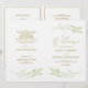Elegante, Vinhas Verde Fluentes e Programas Dourados de Casamento de Caligrafia (Dusty Blue): Estes programas são perfeitos para adicionar um toque elegante ao seu casamento. Com água doce e elegante caligrafia dourada, eles certamente vão impressionar! Estas serão desdobradas (sem dobras). A cor da caligrafia está definida como ouro, mas você pode mudar a cor do design alterando sua cor de fundo. **HOW TO CHANGE YOUR CALLIGRAPHY COLOR** 1) Clique no botão "Personalizar". 2) Clique no link "ClICK TO CUSTOMIZE FAIORE" (ClICK PARA PERSONALIZAR MAIS) na parte inferior. Então você terá a opção de mudar sua "COR DE FUNDO" para sua cor de casamento. Não se esqueça de mudar a cor do texto para corresponder ao seu design.