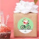 Etiquetas de presentes de Natal cicláveis, etiquetas de favoritos para festas ou selos de envelope de cartões de Natal com Papais noeis de bicicleta.