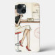 © Andrea Laliberte / Maçã Selvagem. Uma imagem de um vinho de bebendo de mulher vestida de moda. A mulher está vestindo um chapéu preto e um topo, uma saia creme colorida, e calçados vermelhos de salto alto.