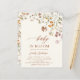 Celebrar a chegada de um novo pacote de alegria com um belo bebê no chá de fraldas temático Bloom. Junte-se a nós por uma tarde cheia de amor e felicidade enquanto honramos os futuros pais. O convite apresenta um espantoso terracota - texto laranja queimado, acentuado por uma série de flores silvestres vibrantes.