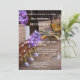 Convite de festas de aposentadoria elegante com uma cena maravilhosa com guitarra, vinho branco e tinto e flores lilás. Bonita festa de aposentadoria organizada por um empregador, assim como uma celebração de aposentadoria organizada de forma privada.