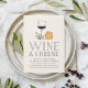 Convidar convidados para o vinho e o queijo com os nossos convites de festas elegantes rústicos, com uma ilustração da cunha de vinho e queijo e "vinho e queijo" em caracteres de estilo manuscrito. Adicione os detalhes de sua festa abaixo usando os campos de modelo fornecidos e personalize este convite para qualquer ocasião, desde aniversários até jantas de ensaio para festas de inauguração!