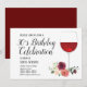 vinho tinto, floral, convite de festa de aniversár