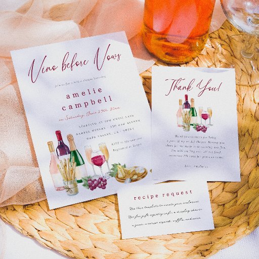 Elegante "Vino antes dos Voos" chás de panela de convites. Este design apresenta uma cena aquosa de vinho tinto, champanhe francês e rosa com paus italianos, uvas, e um quadro de queijo. Perfeito para provandos de vinho e chás de panela de vinificação. Cartões se revertem a um padrão elegante de conselhos de charcutaria, garrafas de vinho e flautas espumantes. Ideal para comemorações de primavera e verão com um tema italiano. Como parte da seleção do orçamento do Zazzle, esta folha não vem em tamanhos padrão de cartão. Para colocar este design em uma placa padrão, você pode encontrá-lo na coleção ou usar o Zazzle Make Machine para transferi-lo para o seu produto preferido. Visualize a coleção vinculada nesta página para itens correspondentes ou visite nossa loja para mais convites de chá de panela!