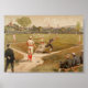 Jogo de beisebol venenoso. Ilustração do final da década de 1800. Diamante de beisebol com cerca de madeira e espectadores em pé na colina. Digitalmente melhorado.