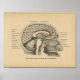 impressão de anatomia em alemão em 1888. Ilustração anatômica humana vinda do Atlas de Mão da Anatomia por Henke. Seção transversal do crânio e do cérebro mostrando o cerebelo, os seios, as artérias e as veias. Medianschnitt des hirnschadels