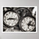 Imagem em preto e branco dos relógios de alarme da safra pela fotógrafa Joanne Mariol.