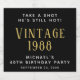 Etiquetas de licor preto engraçadas para a sua festa de aniversário de 40 anos. Personalize o texto "Tome uma Fotografia Ele Ainda Está Quente" se desejar, "Vintage" com o ano em que foi nascer, seu nome e a data da festa.