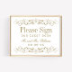 A trilha decorativa e floresce... esta elegante vintage inspirou o cartaz do livro de hóspedes do casamento "Por favor assine" com monograma personalizado. As cores design de ouro branco e antigo podem ser modificadas.