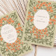 Este Convite Floral ao Casamento Vintage Art Nouveau captura o espírito romântico de uma era passada. Uma sinfonia de designs florais verde-oliva e laranja tangerina dança num pano de fundo de azeitona pálido, criando um quadro elegante em torno do texto central. A intrincada trabalho de arte, que lembra as formas orgânicas fluentes do movimento Art Nouveau, traz um senso de sofisticação e beleza inspirada na natureza. Este convite é perfeito para casais que querem fazer uma declaração de eterno com a papelaria do casamento.