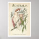 Uma bela ilustração de duas galahs australianas (também conhecidas como coquatoo rosa e cinza) sentadas em galhos de uma goma que tem folhas verdes.