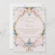 Um convite de casamento temático para uma república de vintage opulente. Apresentando criaturas elegantes em volta dos seus nomes. Cor-de-rosa macio com tons de púrpura azul e pinks em uma matiz pastel refletindo o tempo de regência. Vintage e design de casamento elegante.
