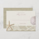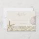 Starfish, areia dólares e lugar no marfim com texto cor-de-rosa suave, cartão de resposta de casamento de praia. Convite romântico para o casamento temático da praia.