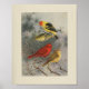 Ilustração de aves Vintage 1923. Pássaro preto, amarelo, vermelho e marrom sentado em um galho de árvore.