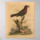 Vintage 1776, ilustração de aves de Gleanings of Natural History. Pássaro vermelho e preto, sentado em um galho de árvore.