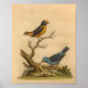 Vintage 1776, ilustração de aves de Gleanings of Natural History. Pássaros cor de laranja e azul-penas sentados em um galho de árvore.