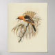 Ilustração de aves Vintage 1923. Pássaro laranja, preto e branco sentado em um galho de árvore.