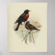 Ilustração de aves Vintage 1923. Pássaro vermelho e preto sentado em um berço.