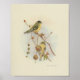 Ilustração de aves Vintage 1923. Pássaro amarelo e marrom sentado em um galho de árvore.