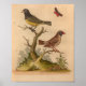 Vintage 1776, ilustração de aves de Gleanings of Natural History. Pássaro, amarelo, vermelho e marrom, sentado em um galho de árvore. Borboleta vermelha.