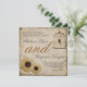 Vintage Birdage Girassóis Girassóis Invasores Russos de Casamento com um antigo olhar de design angustiado com cores desbotadas e bordas aflitas. Tem uma gaiola pendurada no canto superior, e dois girassóis no canto inferior oposto. O texto do convite para o casamento é destacado pelo "e" que liga os nomes da noiva e do noivo sendo grande e ousado e de cor coordenadora. Basta acrescentar a sua própria redação ao modelo.