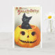 Cartão vitoriano / Vintage Halloween. Gato preto doce e adorável sentado num jack-o-lanterno! Um Hallowe Feliz! Perfeito para amantes de gatos!