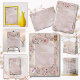 Os detalhes em ouro rosa são simulados na arte. Nenhuma papel laminado rosa real será usado na fabricação deste produto.